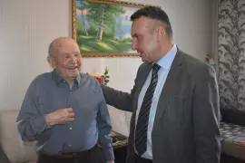 С неподдельной радостью главу администрации района встречал житель поселка Уршельский Борис Иванович Зимонин, который был призван на фронт в ноябре далекого 1943 года, служил в мотострелковом полку. Был старшим оружейным мастером в танковом корпусе. Получил звание младшего сержанта. Участвовал в операциях по освобождению Белоруссии, Украины, Польши.