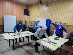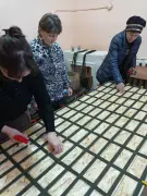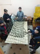 Работают инициативные жители в помещении местного дома культуры. На расчерченные столы определенного размера волонтеры по определенной схеме выкладывают длинные чёрные ленты — парашютные стропы. Прочные полоски ткани активисты умело сплетают в сети. Прищепками закрепляют края, чтобы ровно соединить каждую клеточку тактических носилок. Легкая, компактная конструкция имеет широкое применение: с помощью носилок можно переносить раненых, боеприпасы, можно использовать как гамак, маскировочную сеть или как лестницу — и это далеко не все возможности простого с виду устройства.