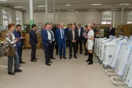 Поэтому первая «остановка» – на заводе «Кронт-М». Его продукция востребована, прежде всего, в медицинской сфере: тут производят стерилизующее и дезинфицирующее оборудование, ультрафиолетовые лампы, контейнеры и тележки для приборов и биоматериалов.