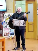 В полёт на воздушном шаре могут отправиться только неисправимые романтики. Хотя один сказал, что он "исправимый". Поэтому на афише клуба авторской песни "Счастливый миг" были изображены воздушные шары и дата концерта - 25 марта. Под лирический шум дождя за окнами Городской библиотеки, в читальном зале звучали песни под гитару знаменитых авторов и свои, сердцем сочинённые. В этом концерте выступали авторы-исполнители из Гусь-Хрустального. Каждого, кто выходил на сцену, приветствовало дружеское юмористическое видео с фотографиями, любимыми фильмами и хобби. Так на сцену выходили: походник-музыкант Александр Кочетов, слесарь-философ Андрей Каржин, юморист-предприниматель Сергей Кузьмин, очаровательная исполнительница Мария Кораблёва, надёжнейший поэт Олег Балашов, верный традициям композитор Михаил Сидоров и три поколения бардовской песни - Наталья, Дарья и Арина Афанасьевы. Милые преданные зрители сердечно проникали в каждое слово, дружно хлопали и подпевали. Даже огромных два букета цветов стали неожиданным призом зрительских симпатий. А декорации с выставкой афиш указывали на славную шестилетнюю историю Клуба, которой и было это посвящение в стихах инициатора клуба Натальи Афанасьевой, автора этой статьи.