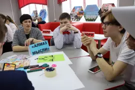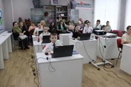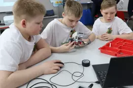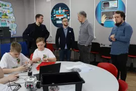 Мастер-класс «Робостарт» (модуль «Робототехника») был представлен учителем технологии С.С. Антоновым. Школьники собирали по схемам роботов из конструктора и писали им программы. «Это развивает пространственное мышление, логические и аналитические способности, способствует получению новых знаний в информатике, электронике и механике. Ребята не только собирают модели из конструктора, но и учатся навыкам программирования», – пояснил Сергей Сергеевич.