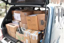 В «гуманитарке» автомобиль «Нива», генераторы, пиломатериалы, гвозди, строительные скобы, топоры, молотки, рации, медикаменты не только блиндажные, но и парафиновые свечи, именные посылки для бойцов.