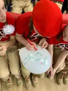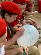 Красной нитью через весь урок прошла мысль о том, что, только сохраняя память о тех страшных событиях, можно надеяться на то, что подобное больше никогда не повторится. В завершение мероприятия, отдавая дань уважения погибшим и выжившим, учащиеся почтили их память минутой молчания, а затем приняли участие в акции «Пусть будет мир!». Ребята написали на воздушных шарах белого цвета призывы к миру и выпустили их в окно.