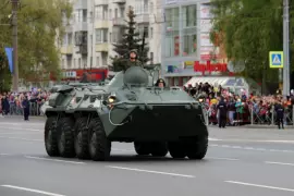 В механизированной части парада приняла участие различная боевая и специальная военная техника: боевые агрегаты Ракетных войск стратегического назначения, предназначенные для организации несения боевого дежурства на маршрутах боевого патрулирования, бронетранспортёр БТР-80 и боевая противодиверсионная машина БТР-82 «Тайфун», техника для оперативного наведения понтонных переправ и обеспечения маневренных действий войск.