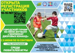 Проект "Чемпионат дворовых команд" будет продолжен этим летом. Турнир по мини-футболу среди дворовых команд начнется с 5 июня и продлиться до 10 сентября. В турнире смогут принять участие более 20 самых смелых молодых юнош с разных микрорайонов города Гусь-Хрустального. В течении всего лета с ребятами будут работать тренера-любители, под руководством которых они будут тренироваться, учиться играть в футбол, повышать свои навыки владения мячом и многое другое. Будет сформированы четыре дворовые команда, между которыми пройдут футбольные матчи. Самые активные ребята будут награждены подарками.