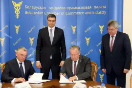 15 мая делегация Владимирской области провела переговоры с коллегами из Белорусской торгово-промышленной палаты. В присутствии Губернатора Александра Авдеева руководители палат Республики и нашего региона Михаил Мятликов и Иван Аксёнов подписали соглашение о сотрудничестве.