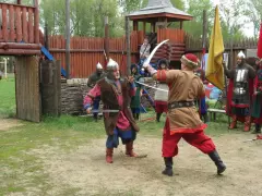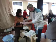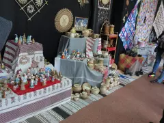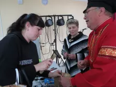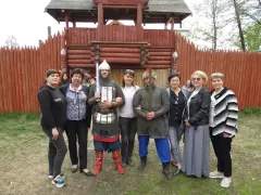 Далее посетили культурно-досуговый центр города Меленки, в котором всех ждали и показали очень насыщенную и информативную программу: интерактивная программа «Делу время, а потехи час», театрализованная программа фестиваля «Радужное ожерелье», выставка работ декоративно-прикладного искусства, мастер-классы по народным традиционным промыслам и ремеслам Меленковского района (гончарный промысел, лозоплетение, изделия из бересты, роспись по керамике, лоскутное шитье, плетение кружев на коклюшках). Все участники попробовали плести, рисовать и даже создать из глины горшочек себе на память.