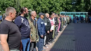 8 июня у Дома культуры молодёжи во Владимире прошла очередная отправка добровольцев в учебные подразделения Минобороны. Более 30 наших земляков приняли решение служить в рядах Вооружённых сил России по контракту. Их напутствовали военный комиссар Владимирской области Юрий Гусаров, министр региональной безопасности Сергей Полузин, руководитель областного исполкома ОНФ Артём Старостин, волонтёры, участники боевых действий и представители ветеранских организаций, священнослужители и родственники.