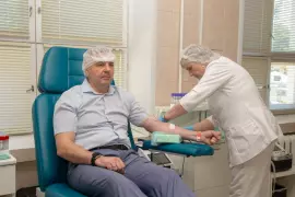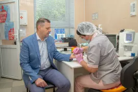 В этот раз в роли «звездного донора» заместитель председателя областного парламента Роман Кавинов. Кровь он сдает не в первый раз. «Дебют» состоялся еще в студенчестве, когда учился в военном училище. После долгого перерыва несколько лет назад возобновил донорскую практику.