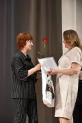 По случаю праздника от лица главы города Алексея Соколова к виновникам торжества обратилась Оксана Кабанова, заместитель главы администрации по общим вопросам.