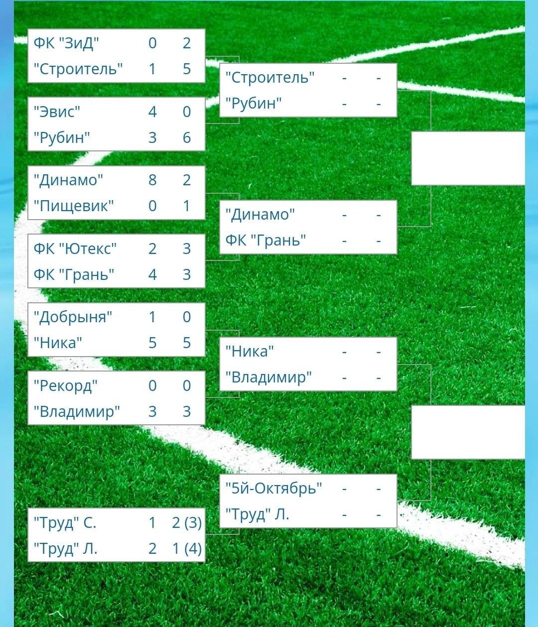 Матчи ¼ финала состоятся 5 и 19 июля. «Строитель» на этом этапе пути сыграет с обидчиком ФК «Эвис» балакиревским «Рубином». Первые матч пройдет на стадионе д. Купреево.