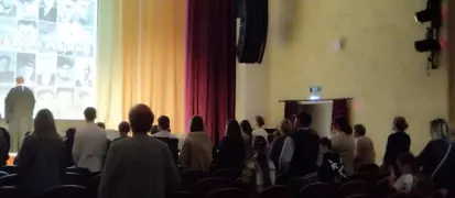 На экране кинозала были воспроизведены презентации событий военного времени 1941-1945гг. и рассказали о Героях земляках Красноэховцах, где каждый житель посёлка узнал своего отца, деда, мать, сестру и брата, вспомнил и почтил память минутой молчания.