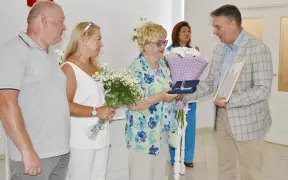 Искреннюю благодарность за сохранение любви и верности друг другу выразил председатель горсовета Николай Балахин, адресовавший добрые пожелания супружеским парам.