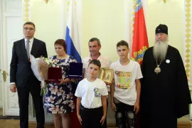 7 июля в Доме Дружбы прошёл областной праздник, посвящённый Дню семьи, любви и верности. Семьи Владимирской области – многодетные и с большим «опытом» совместной жизни – наградили Губернатор Александр Авдеев и Митрополит Владимирский и Суздальский Тихон. Также в мероприятии приняли участие сенатор РФ Ольга Хохлова, вице-губернатор Владимир Куимов, министр образования и молодёжной политики Светлана Болтунова.