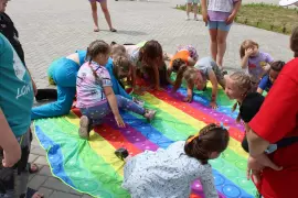 На одной проходил мастер-класс по изготовлению главного символа праздника – ромашки. На другой площадке желающие рисовали плакаты ладошками. Так же было организованно семейное чаепитие. Все участники были награждены памятными призами. Для детей прошла пенная вечеринка с секретным гостем праздника — голубым мишкой «Пломбир». Дети получили много незабываемых эмоций.