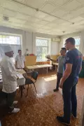 В подшефном нашему региону городе Докучаевске Александр Авдеев осмотрел ход восстановительных работ на объектах коммунальной, дорожной и социальной инфраструктуры, оценил ремонт школы №4 и городской больницы, а также итог восстановления Торгово-экономического колледжа. Усилиями Владимирской области здесь сделали остекление фасада, повреждённое при обстрелах. Совместно с заместителем директора Еленой Перец обсудили план дальнейших работ.