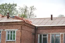 У второго корпуса школы №2 уже выполнены работы по ремонту кровли над спортивным залом. Они проходят в соответствии с погодными условиями.