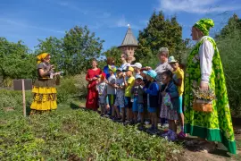 Само собой, откроются и ярмарка мастеров, и гастрономическая ярмарка, а по всей территории музея развернутся тематические площадки. Детская будет у ступального колодца, игры и кукольное представление для ребятни там проведёт фольклорная группа «КрАсота». У дома из села Тынцы ожидается мастер-класс от ArtMe: всем желающим предложат расписать арт-объект «Яблоко». Там же в 11:30, 13:00, 14:00 раскроют секрет изготовления куклы-оберега «Суздальская травница».