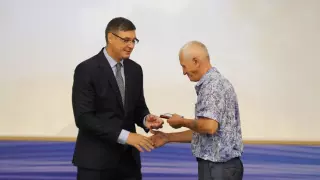 За активную общественную работу, большой личный вклад в решение социальных вопросов жителей сельских населённых пунктов Губернатор вручил 17 памятных знаков «Сельскому старосте. За добросовестный труд». В числе обладателей почетной награды - житель деревни Залесье Гусь-Хрустального района Владимир Чирков.