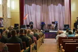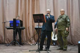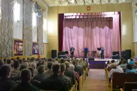 Публика тепло встречала творческий коллектив из Гусь-Хрустального района. Артисты выступили великолепно. Они исполнили патриотические песни, овеянные духом служения Отчизне. В музыкальных произведениях пелось о любви к родине, о величии нашей страны и о солдатской службе, а также о любви близких, которая помогает в боях и дает силы в борьбе с врагом.