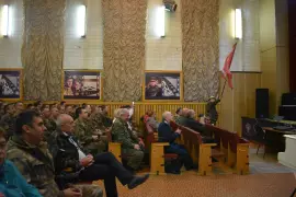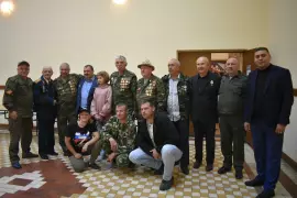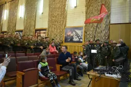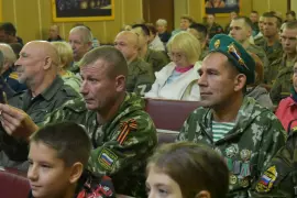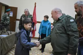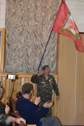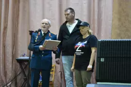 Председатель «Ковровского боевого братства» Андрей Швецов передал в адрес главы администрации Гусь-Хрустального района Алексея Кабенкина благодарственное письмо. Для первого заместителя главы администрации района Вадима Жаркова был передан танковый шлем, срочную службу Вадим Николаевич проходил на плавающем танке ПТ-76.