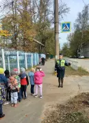 Продолжились мероприятия для воспитанников детских садов экскурсией, в ходе которой ребята в сопровождении воспитателей и инспекторов ГИБДД, прошли не только по основным маршрутам движения детей, но и обошли всю территорию, расположенную непосредственно вблизи детских садов.