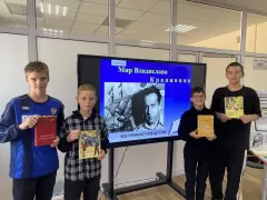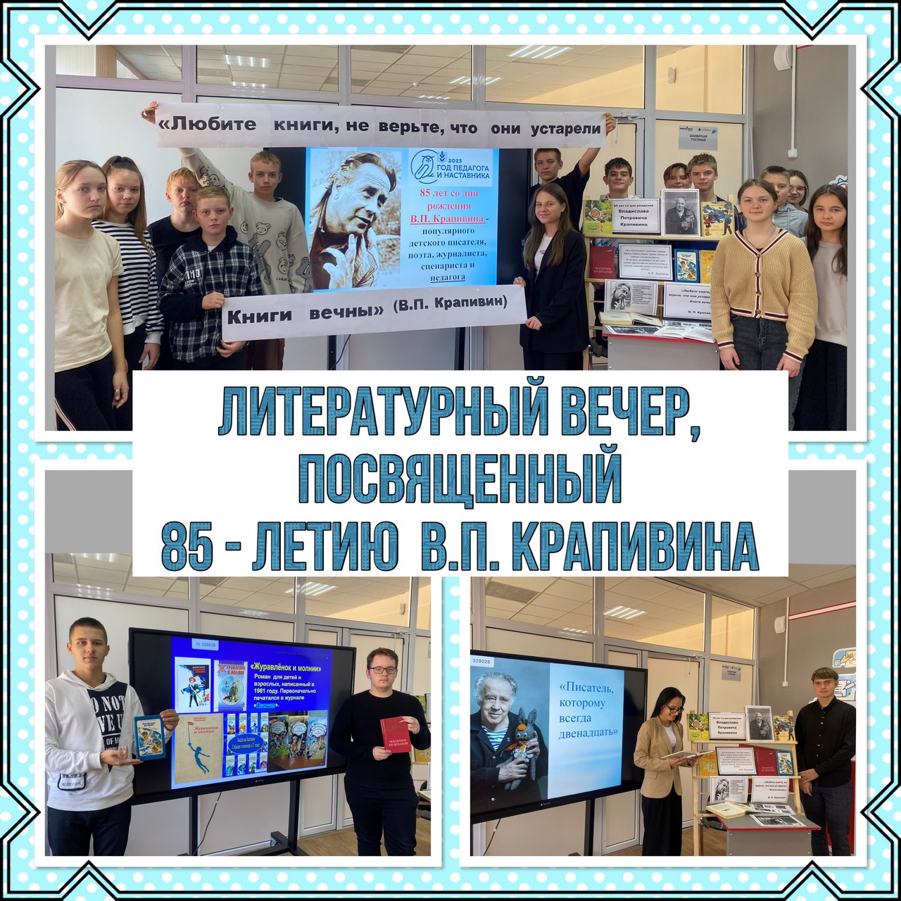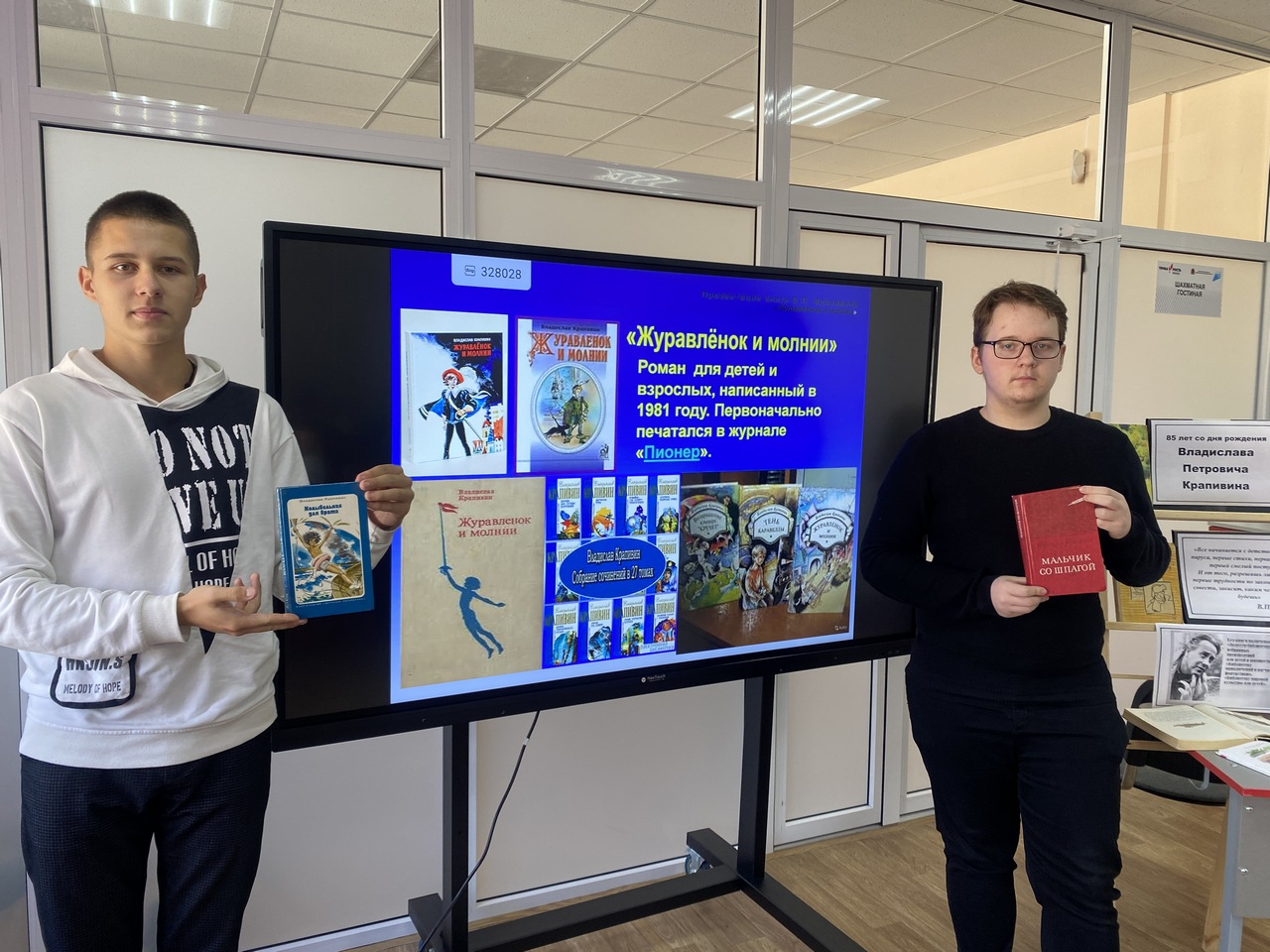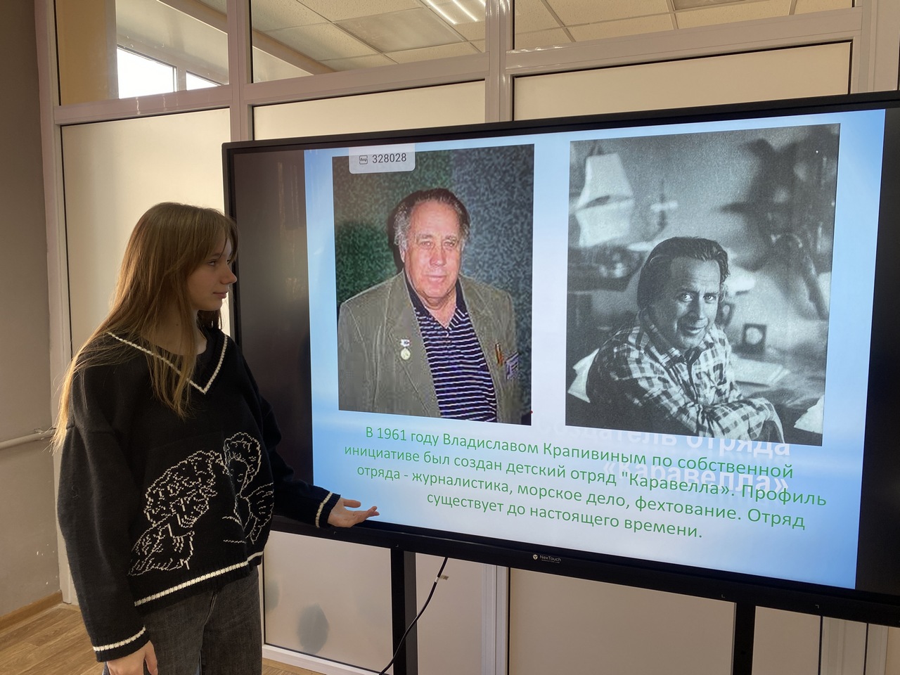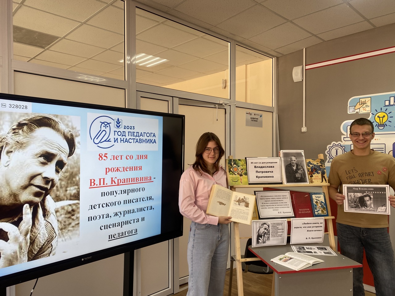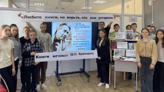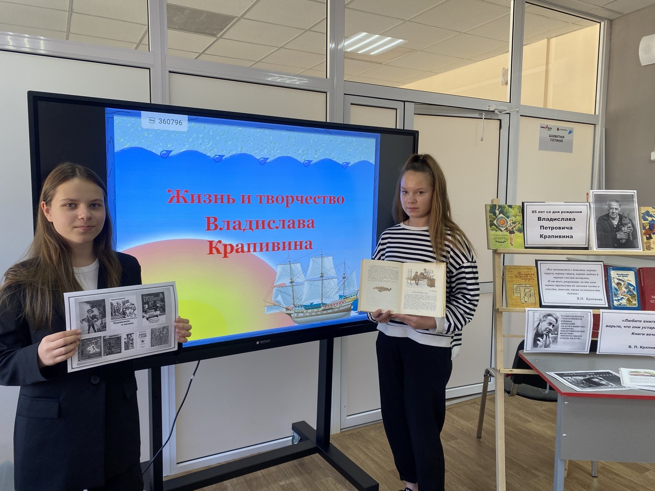 Учащиеся, отправившись в увлекательное путешествие по страницам книг Владислава Крапивина, познакомились с творческим путём писателя, узнали его самые известные и поучительные произведения, посмотрев видеообзор его книг и прочитав отрывки из них. По признанию писателя, он не просто так выбрал детскую литературу: благодаря ей он хотел продлить собственное детство, искалеченное войной. Всего Владислав Крапивин написал более ста произведений для детей и юношества. Более двухсот изданий книг Крапивина вышло на разных языках мира. Еще при жизни Владислав Петрович был назван классиком детской литературы. С 2006 года стала присуждаться ежегодная Международная детская литературная премия имени В. П. Крапивина. В 2014 году Владислав Петрович Крапивин был удостоен премии Президента Российской Федерации за вклад в развитие отечественной детской литературы.