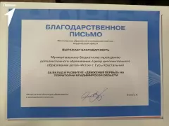 Коллектив Центра награждён благодарностью заместителя министра образования и молодёжной политики Е. В. Яниной за вклад в развитие «Движения Первых» на территории Владимирской области.