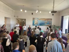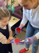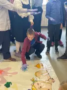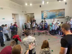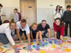 Ребята, под чутким руководством своих кураторов, самозабвенно делали «мумию» из своих товарищей, проявляя при этом свою фантазию и креативность. Играли в яркий «воздушный волейбол», где кипели нешуточные страсти. Зажигательно танцевали и подпевали. А в заключении оставили свой след на общей картине. Это было ярко, весело и зажигательно!