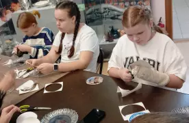 1 ноября в городском историко-художественном музее прошел мастер-класс по изготовлению стеклянного сувенирного блюда (на готовое блюдо наносится деколь) для ребят из Судогды. В начале мастер-класса гости узнали про виды стекла, способы изготовления стекла и хрусталя, технологии декорирования. После теоретической части участники приступили к изготовлению своего сувенирного блюда, который каждый участник забрал с собой. Такое блюдо – отличный подарок для друзей и близких.