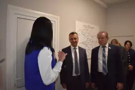 Директор филиала ГКУ ВО «Центр занятости населения Владимирской области» — «Гусь-Хрустальный» Оксана Яковлева совместно с сотрудниками провела почетным гостям экскурсию по модернизированному филиалу, продемонстрировав все обновления, которые коснулись не только внешнего облика кадрового центра, но и внутреннего содержания. Обеспечены единые подходы в решении вопросов занятости населения: удовлетворение потребности работодателей в квалифицированных трудовых ресурсах, снижение безработицы, содействие в реализации профессионального потенциала жителей города и района.