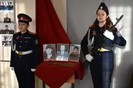 Душевная атмосфера царила и в школе № 10, где в школьном музее «Красная гвоздика» состоялось открытие экспозиции, посвященной героям современной России – защитникам Донбасса, а также парт героя – выпускникам школы, участникам боевых действий в Чечне Андрею Зайцеву и Андрею Орлову, и участнику СВО Денису Шевченко.