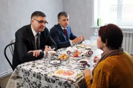 Первые новосёлы с радостью приняли Губернатора как гостя. «Очень нам всё нравится – и квартира, и как дом расположен», – поделилась жительница дома Любовь Кокуркина.