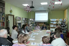 Надежда Любимова подробно рассказала о работе ГБУСО ВО «Гусь-Хрустальный комплексный центр социального обслуживания населения». Она предоставила буклеты и памятки о работе различных отделений центра с указанием предоставляемых услуг с контактными телефонами.