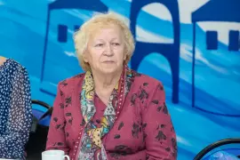 Начали встречу с просмотра ставшего уже известным фильма владимирских документалистов «Zа нами Zавтра». Он рассказывает о жителях Донбасса сегодня и 10 лет назад, показывает истории наших земляков-героев – солдат и волонтеров. 35 минут диалога с участники СВО, их родственниками, теми, кто «внутри». Искренний и прямой рассказ «от первого лица». Аудитория не могла сдержать слезы – настолько точно слова и кадры обращаются к сердцам зрителей. Ольга Хохлова предложила активнее показывать фильм, в частности, в школах: «Я уверена, что, посмотрев его, можно поменять взгляды на некоторые вещи. Даже тем, кто не верит ни во что».