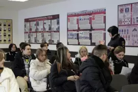 Мероприятие началось с посещения дежурной части, где ребятам рассказали о режиме работы, телефонных линиях, о процедуре подачи заявления в полицию, напомнили об ответственности в случае ложных сообщений. Продолжилось мероприятие выступлением сотрудников кадрового подразделения, которые рассказали о порядке приема и прохождения службы в органах внутренних дел, правах и обязанностях полицейских, а также о социальных гарантиях сотрудников ОВД. Участники мероприятия были проинформированы о высших учебных заведениях системы МВД России, осуществляющих набор кандидатов. Сотрудники полиции продемонстрировали ребятам фильм о данных образовательных организациях.