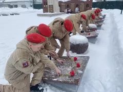 Собравшиеся отдали дань памяти тем, кто до последней капли крови, до последнего вздоха сражался, воевал за нашу родную землю, за наше будущее. Склонив головы, участники митинга почтили память героев Сталинградской битвы минутой молчания, и красные гвоздики непрерывной лентой потянулись к мемориальным плитам и легли как капли крови на белый февральский снег.