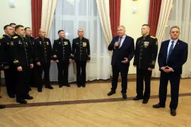 3 февраля в Северодвинске состоялась торжественная церемония вывода из эллинга атомного подводного крейсера стратегического назначения «Князь Пожарский». Она прошла под руководством Главнокомандующего Военно-морского флота России Николая Евменова. В мероприятии также приняли участие руководители органов власти Архангельской и Владимирской областей. Наш регион представляли заместитель Губернатора Эдуард Селезнёв и министр региональной безопасности Сергей Полузин.