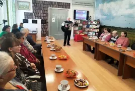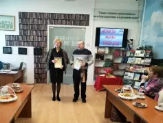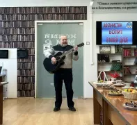 Песни не оставили равнодушным никого из участников мероприятия. Слова искренней благодарности и пожелания дальнейших творческих успехов прозвучали в адрес О.Балашова от директора Городского библиотечного информационного центра А.А. Балахиной. Анна Андреевна поздравила Олега Викторовича Балашова с приближающимся праздником – Днем защитника Отечества.