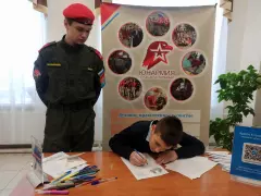 Перед началом мероприятия юнармейцы и активисты "Движения Первых" приглашали всех гостей принять участие во Всероссийских акциях "Поздравь Защитника" и "Подарок Солдату".