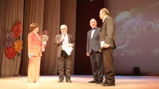 Ольгу Владимировну с юбилеем поздравили заместитель министра культуры Владимирской области Елена Соскова и председатель комитета по культуре и туризму города Гусь-Хрустального Валентина Кустарова. Ольге Кузнецовой были вручены почетные грамоты и памятные подарки. Затем юбилярша принимала теплые поздравления от творческих коллективов Единого социально-культурного центра: народного коллектива академического хора «Вдохновение» (руководитель Елена Малюга), литературного объединения «Мещера», солистов студии русской песни «Ваталинка» (руководитель Елена Бибяева), вокального ансамбля «Аранжемент» (руководитель Анна Изуита), народного театра (руководитель Ольга Тарлакова), муниципального духового оркестра им. Е.К. Соловьева, вокального ансамбля «А-соль» (руководители Татьяна Сумская и Маргарита Земцова). С особым трепетом Ольга Владимировна принимала творческое поздравление от выпускников хореографического ансамбля «Хрустальные грани».