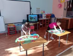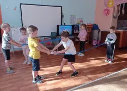 Весело проходили игры: «Бежит ручеек», «Солнечные лучики» и, особенно, «Цветочная полянка». Проявляя фантазию, ребята украшали «полянку» красивыми цветами.