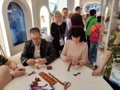 Готовую брошь участники оставляли у нас для отправки их нашим солдатам в зону СВО, а взамен забирали ленточку, чтобы сделать брошь дома. Также была возможность написать письмо солдату, свои мысли, эмоции, благодарность. Сложить его треугольником и положить в наш заветный сундук для отправки в зону СВО.