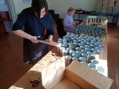 Волонтёры Победы из деревни Аббакумово изготовили целую партию окопных свечей — 965 штук. Окопные свечи для наших мобилизованных очень важны и нужны. Горит такая свеча около 6-7 часов, давая свет и тепло. Её можно погасить и зажечь заново. У свечи можно погреться, подсушить обувь, подогреть еду, вскипятить воду. Дело это кропотливое, требует немало времени: окопная свеча изготавливается из жестяной банки, в которую помещают скрученные полоски гофрокартона, затем его заливают парафином или воском.