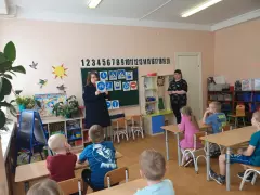 В преддверии школьных каникул инспекторы ОГИБДД МО МВД России «Гусь-Хрустальный» совместно с коллегами из подразделения по делам несовершеннолетних приехали к воспитанникам детского сада № 37 города Гусь-Хрустальный. В игровой форме полицейские рассказали маленьким участникам дорожного движения об основных правилах дорожной безопасности. Напомнили о недопустимости игр около проезжей части, о том, что надо крепко держать за руку взрослого при переходе дороги, о важности перехода проезжей части только в установленных местах и обозначении сигналов светофора. Вместе с дошколятами изготовили световозвращающие аксессуары.