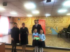 Лауреатов 1 степени Эвелину Гусеву и Марину Кораблеву (преподаватель Елена Пискарева).