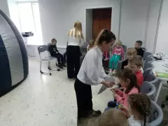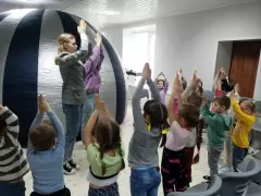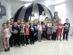 Здесь студенты специальности «Дошкольное образование» организуют и проводят познавательные и интересные виртуальные экскурсии в мобильном планетарии.