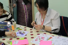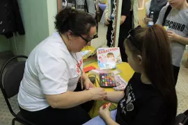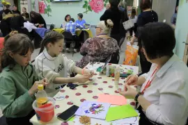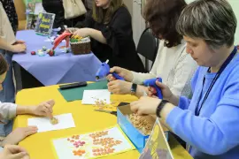 В празднично украшенном фойе дома культуры для посетителей работали мастер-классы по декоративно-прикладному творчеству и рукоделию: «Фисташковая красота» (поделки из ореховой скорлупы, Бакулина Ю. В., заведующий отделом обслуживания Анопинской б/ф), «Ромашки белый лепесток» (изготовление ромашек из проволочного материала, заведующий отделом обслуживания Лесниковской б/ф Малышева Ж. В.), «Пластилиновые камушки», изготовление бус из пластилина, редактор отдела комплектования межпоселенческой центральной библиотеки М. Г. Соколова), «Открытка моей семье» (создание 3D открытки, заведующий отделом обслуживания Вековской б/ф Песотская С. В.), мастер-классы по изготовлению брошей «Изысканная брошь для модницы» (директор Талановского Дома культуры Уварова Т. А.), «Брошь из фоамерана» (художественный руководитель Тащиловского Дома культуры Зубкова В. О.). Всем желающим для создания праздничного настроения украшала лицо аквагримом педагог Центра дополнительного образования детей г. Курлово М. В. Колышева.