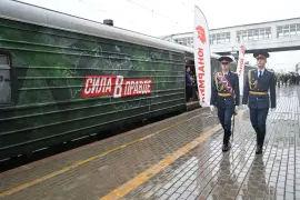Поезд Минобороны «Сила в Правде» с 23 февраля по 9 мая сделает остановки в 75 городах 67 регионов России. Маршрут насчитывает 34 тысяч км, две трети из которых поезд уже прошел. Цель акции — противодействие попыткам фальсификации истории, а также демонстрация успехов и достижений армии и флота.