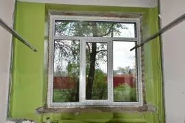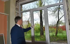 В данный момент подрядная организация ведёт работы по замене оконных блоков.